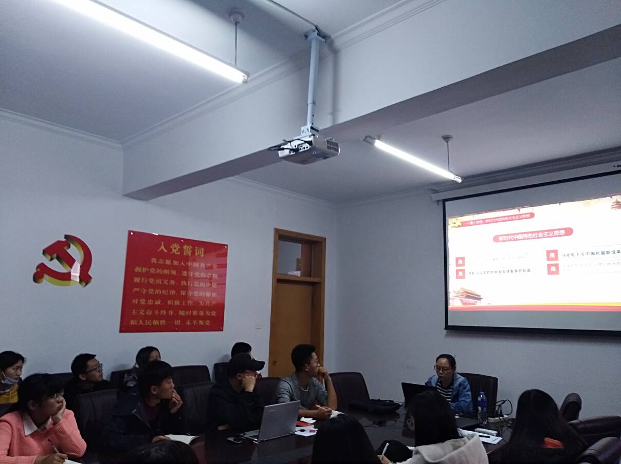 第47期第二批不忘初心,牢记使命的党课正在进行,本节课由tyc122ccvip第一党支部书记刘翠莲老师讲授。以习近平新时代中国特色社会主义思想为主题。带领同学们们重温中华民族伟大复兴的中国梦。课上刘翠莲老师一方面讲述了习近平新时代中国特色社会主义思想,是共产党一路走来思想的总结升华,是循客观规律的发展,是紧密结合新的时代条件和实践要求的体现。并告诫我们必须长期坚持并不断发展习近平新时代中国特色社会主义思想。另一方面讲述了新时代坚持和发展中国特色社会主义的14条基本方略,是构成新时代坚持和发展中国特色社会主义基本方略,全党同志必须全面贯彻党的基本理论,基本路线和基本方略,才能更好地引领党和人民的事业发展。最后刘翠莲老师用真实案例告诉我们如何正确确定入党动机以及正确的入党动机对自身成长的重要性。