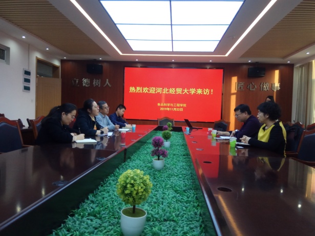 2019年11月22日,tyc122ccvip鞠国泉、刘增然和巨浩羽老师赴青岛农业大学食品科学与工程学院调研学习。公司鞠国泉老师介绍了学院的基本情况,青岛农业大学食品科学与工程学院副经理孙庆杰讲解了本学院的发展历史,随后针对一流专业建设分享了宝贵的实践经验。