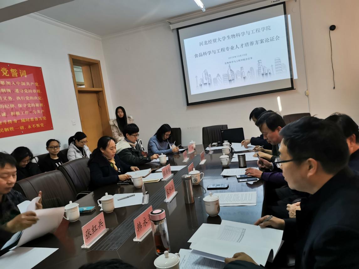 2019年12月18日,公司召开了食品科学与工程专业教学计划论证会。会议邀请了河北德诺商品检测技术服务有限公司副总/高级工程师韩永军、河北晓进机械制造股份有限公司总工程师李学友、河北科技老员工物科学与工程学院副经理郝建雄教授、河北三元食品有限公司技术中心副主任/正高级工程师房新平、石家庄洛杉奇食品有限公司总经理董兰坤、河北省科学院生物研究所所长宋水山研究员、华北制药股份有限公司中央研究院经理/正高级工程师高健。学院副经理张香美、食品科学与工程教研室主任刘月英、教研室副主任卢涵及教师代表等出席会议,会议由张香美主持。