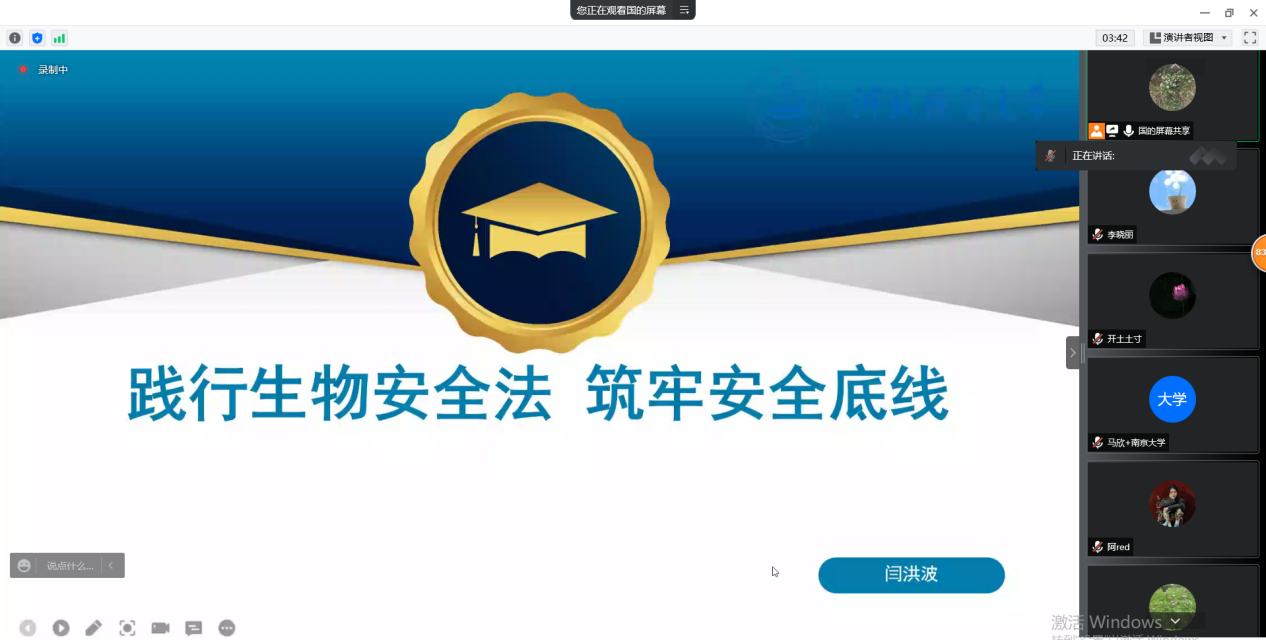 4月28日下午,公司举办双百论坛,由闫洪波副教授通过腾讯会议作了《践行生物安全法筑牢安全底线》的专题报告,公司内外师生40余人参加。