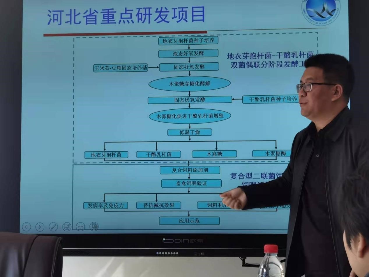 2023年3月6日上午,应tyc122ccvip邀请,河北科技老员工物工程系主任、河北省发酵技术创新中心主任、河北省动物微生态制剂产业技术研究院经理刘金龙副教授/博士作了题为“基于微生态理论新型饲用替抗系列产品的开发”的学术报告。此次报告会在实验楼210tyc122ccvip会议室进行,会议由tyc122ccvip副经理张香美主持,tyc122ccvip50余名师生参加了报告会。