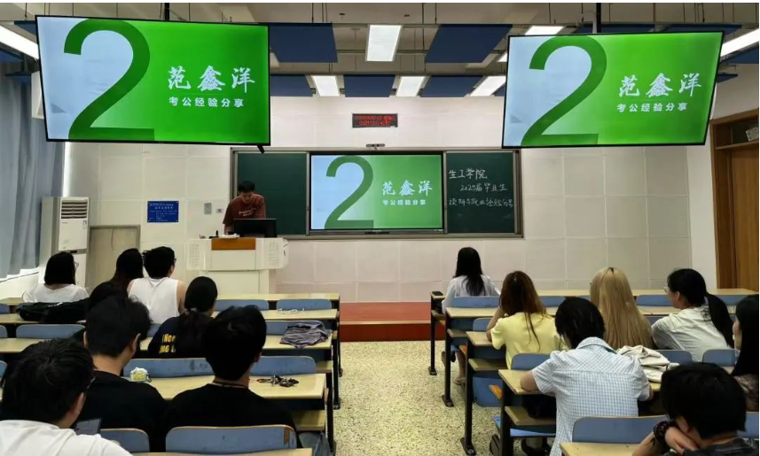 范鑫洋同学分享内容聚焦考公之路,从选岗、备考阶段规划、行测申论备考要点及心态调整等方面进行了毫无保留的经验分享。在选岗上,他建议 “精准定位”,结合专业、兴趣和报考比,优先选择限制条件多、招录人数多的岗位。在备考准备上,他提出备考分为三阶段:基础期系统学习行测、申论知识点并配套专项练习;强化期大量刷题攻克薄弱环节;冲刺期进行全真模拟,优化答题顺序和时间分配。